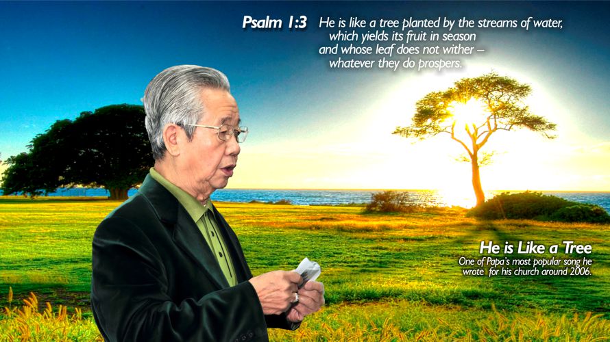 I can remember clearly the very peaceful and solemn moment. A prayer was led by Auntie Maria and continued with Amazing Grace followed with Papa’s favorite song “(他要像一棵樹) He Shall Be Like a Tree”
